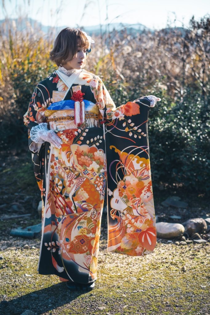 衣装は私たちが実際に見て素敵だと思ったものを仕入れております。職人の手仕事で作られたアンティークの引振袖など、着物の魅力を楽しんで頂けます。